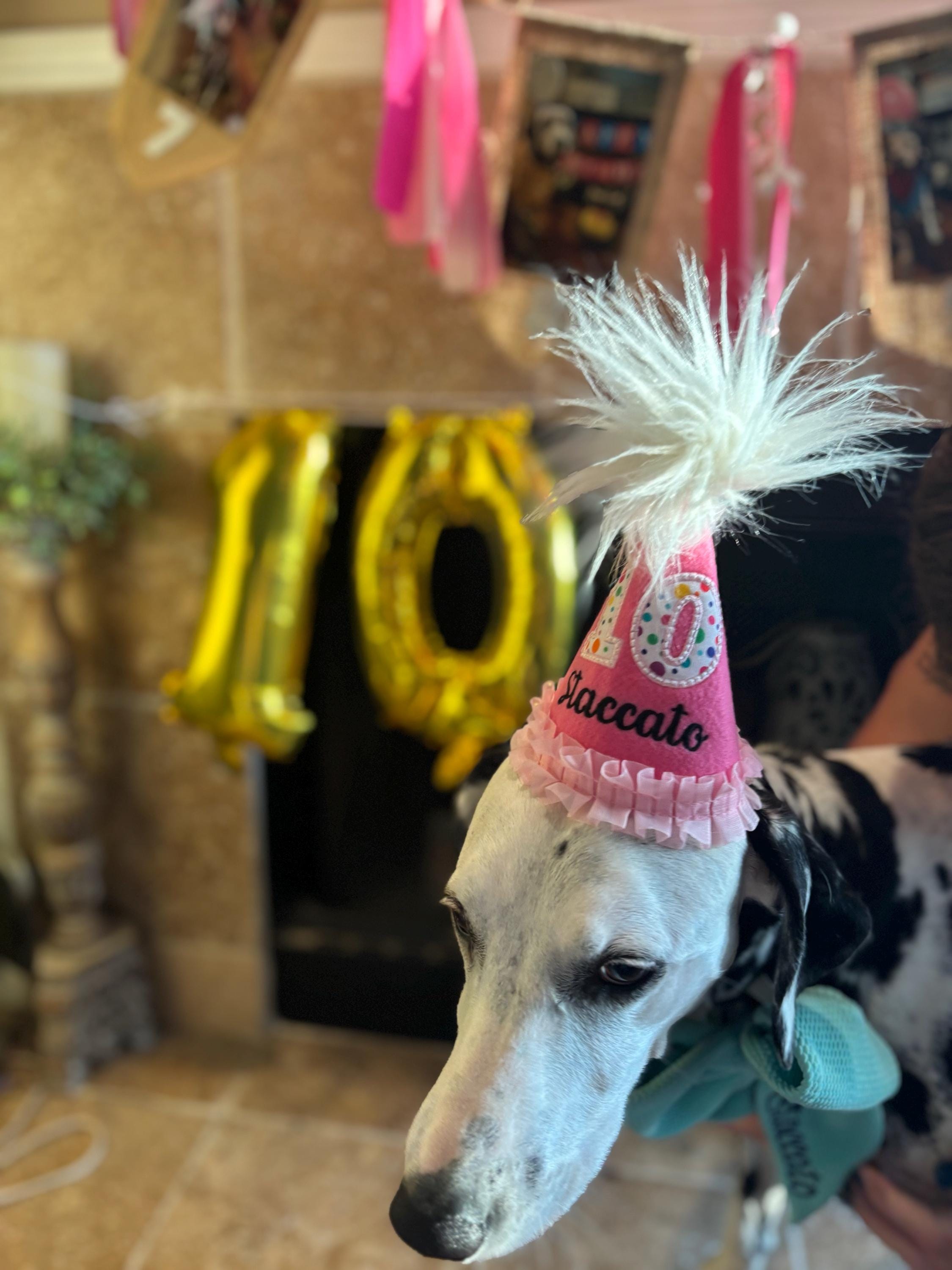The birthday hat for our pup was beautifully made. The colors and detail are fantastic.!