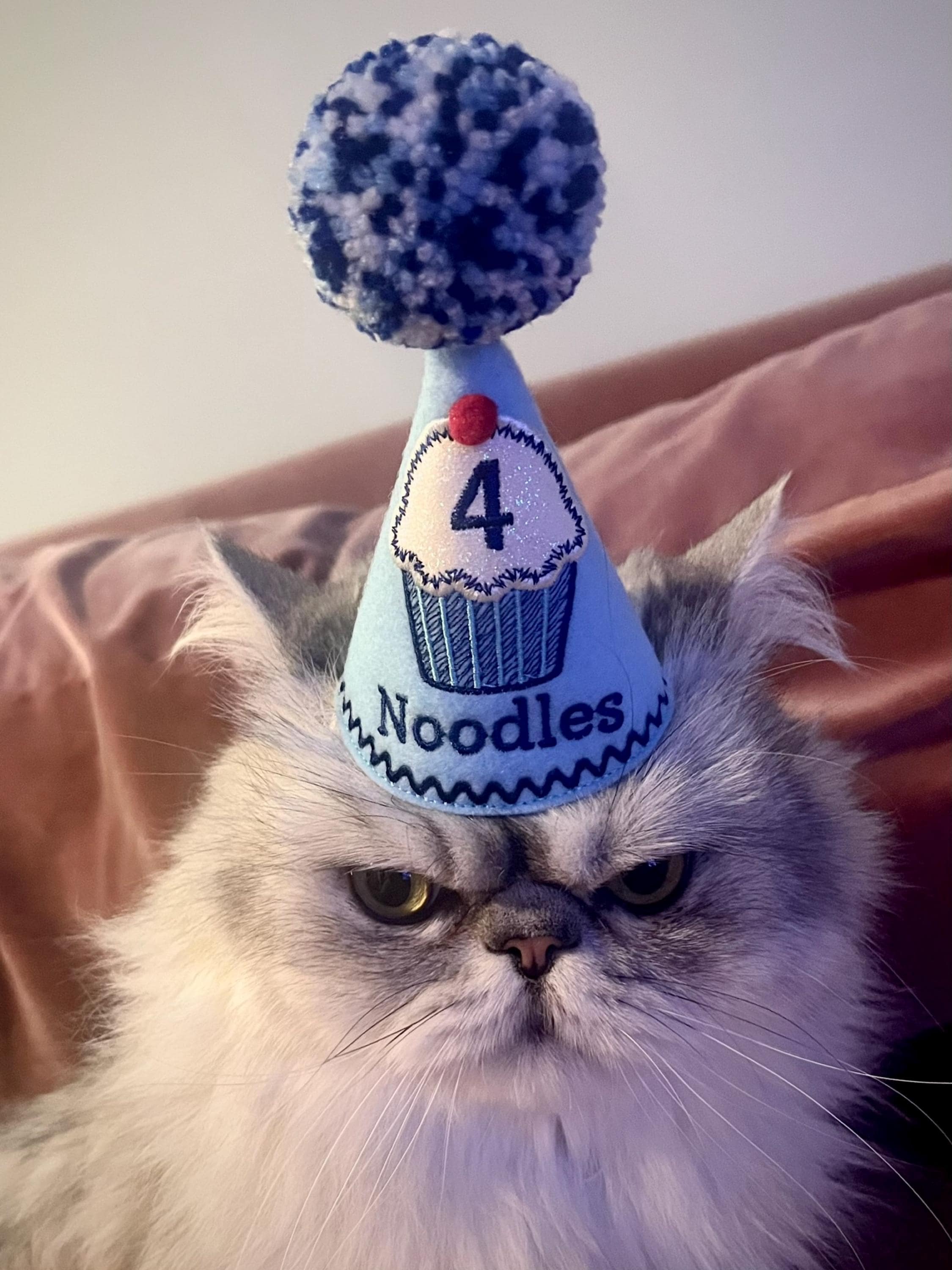 Another beautiful hat to celebrate my cat’s birthday this year! He loves it! He just naturally looks grumpy. 😂