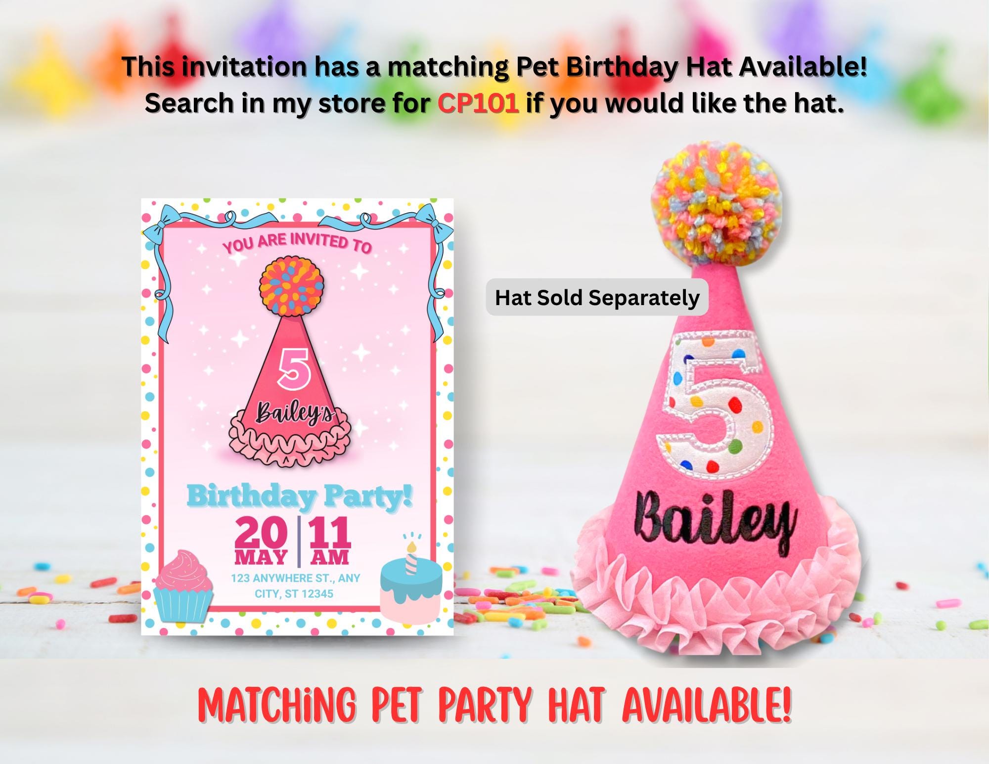 matching pet party hat from my store, that item is sold