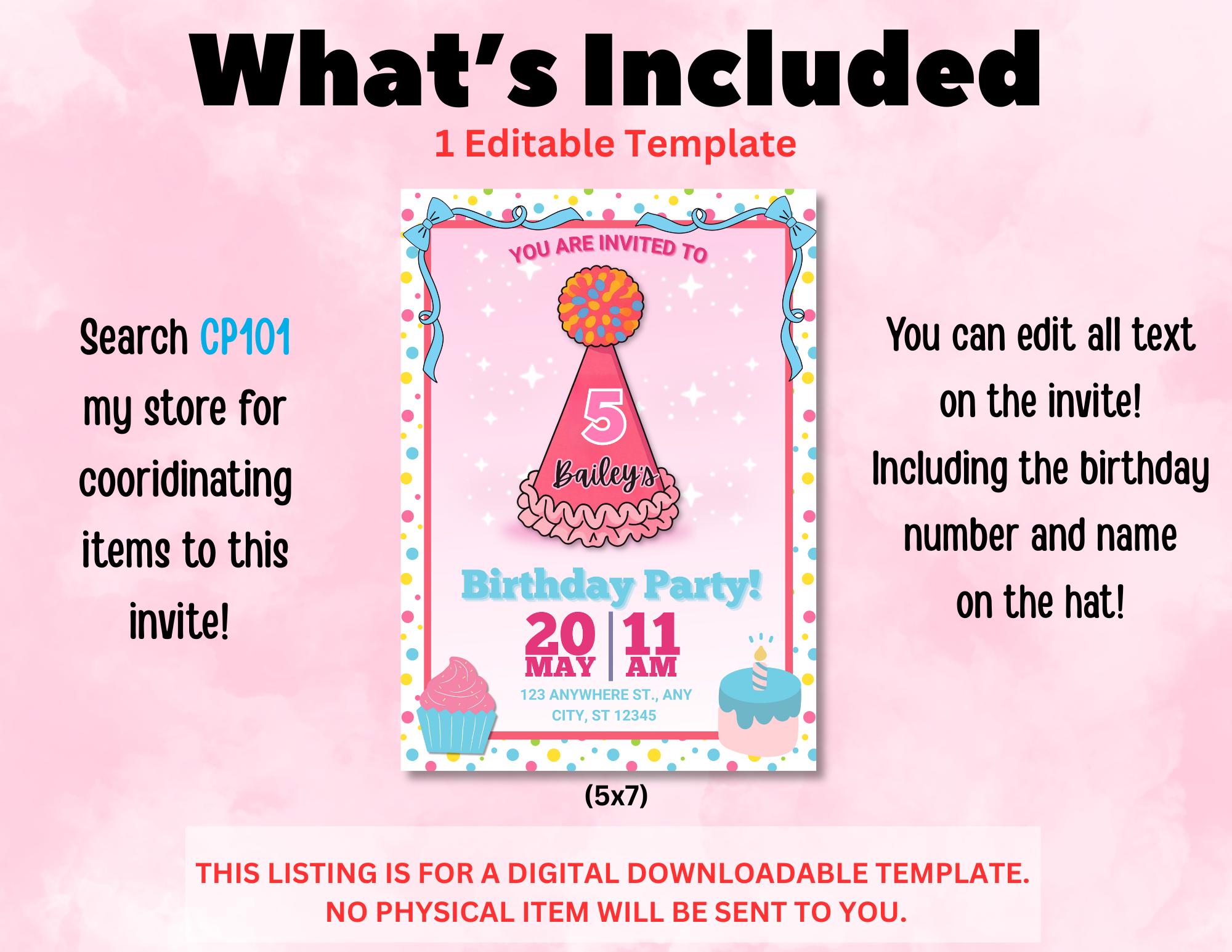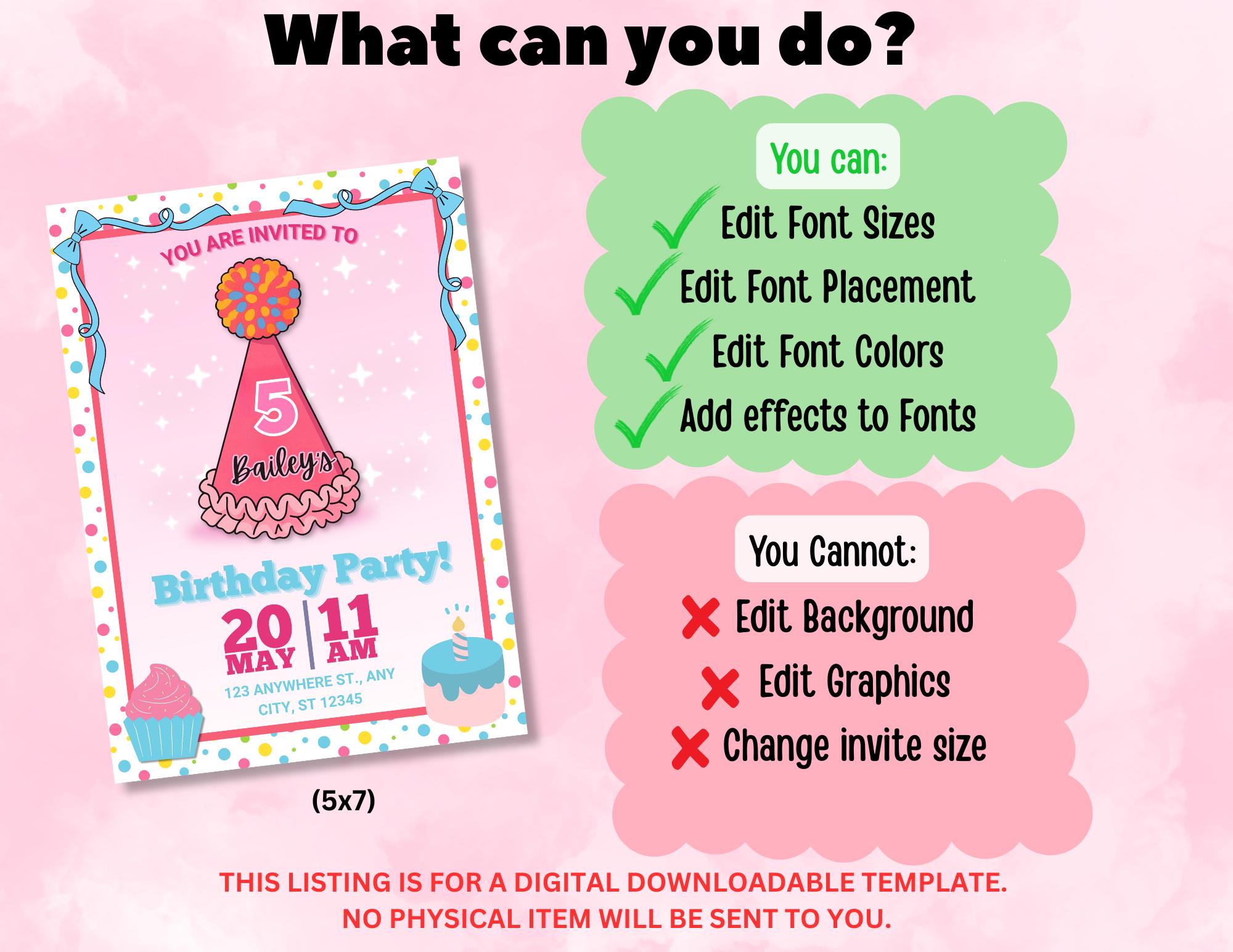 •Digital editable birthday invitation template