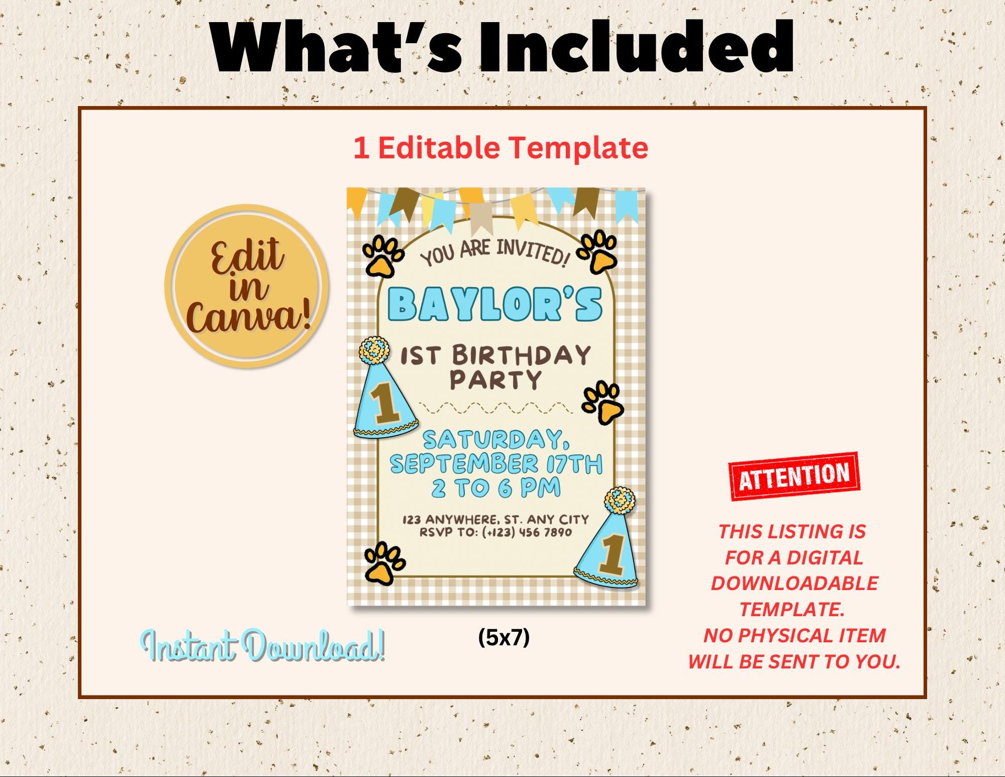 Digital birthday invitation editable in Canva