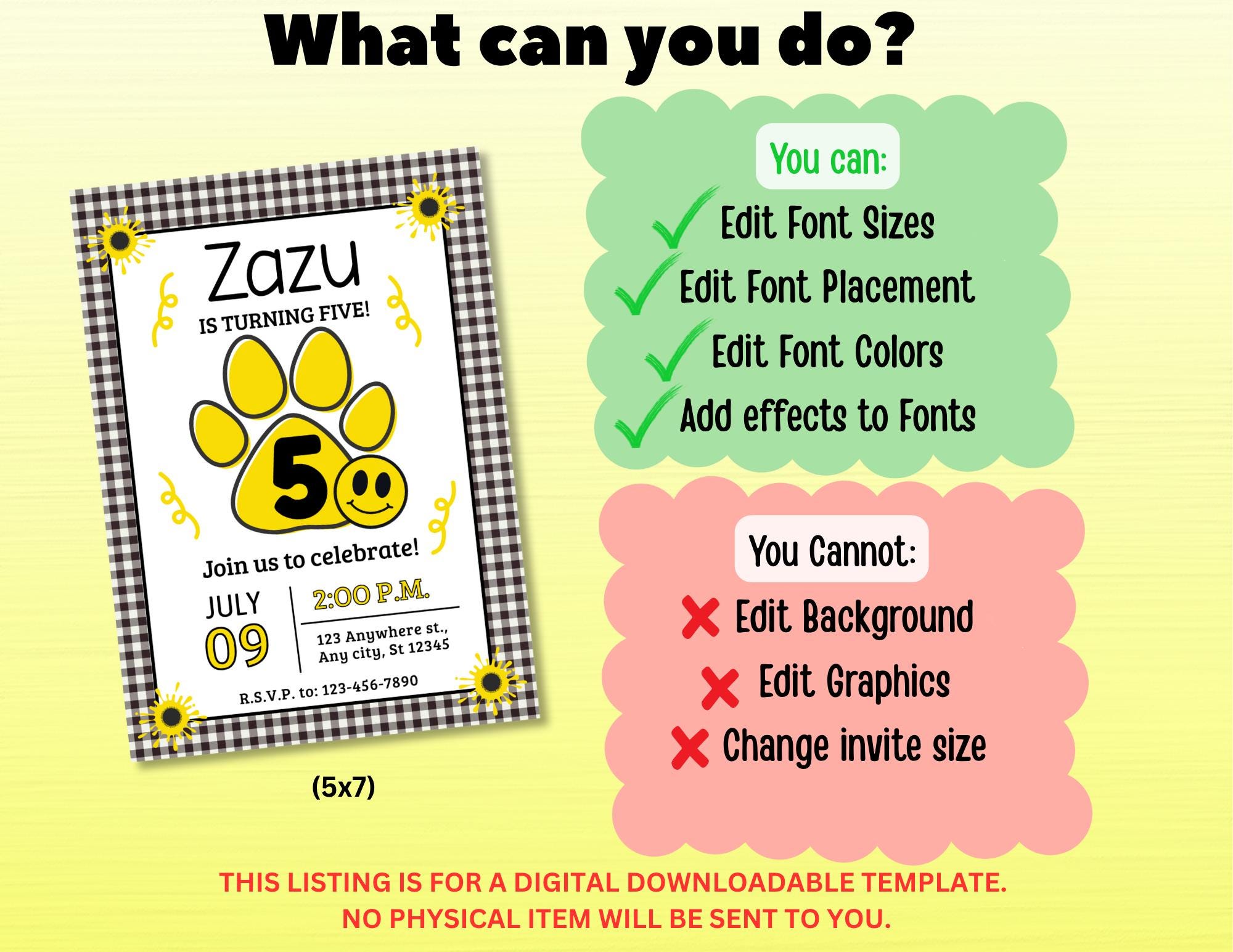 this Yellow Buffalo Plaid Paw Digital Birthday Invitation!