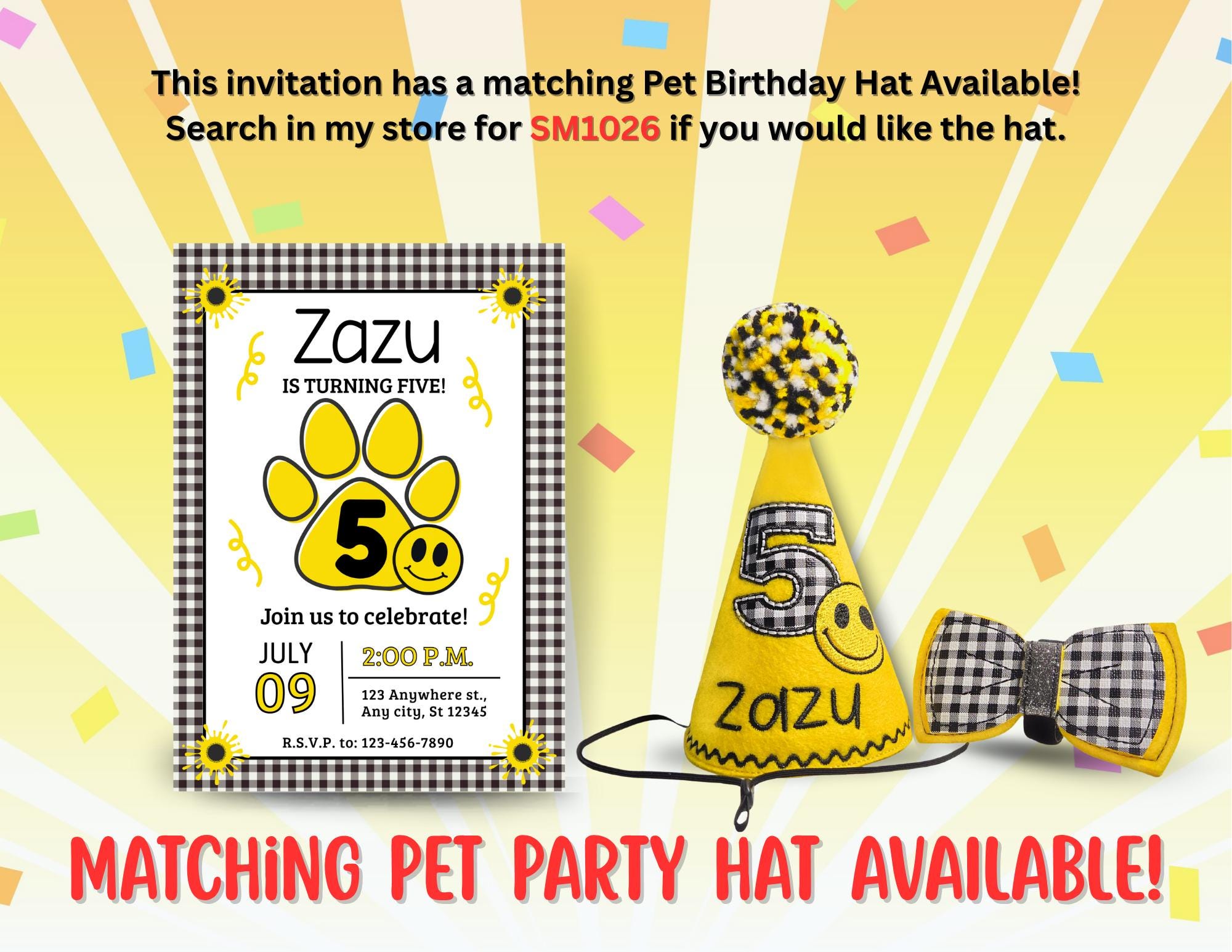 Yellow Buffalo Plaid Paw Digital Birthday Invitation